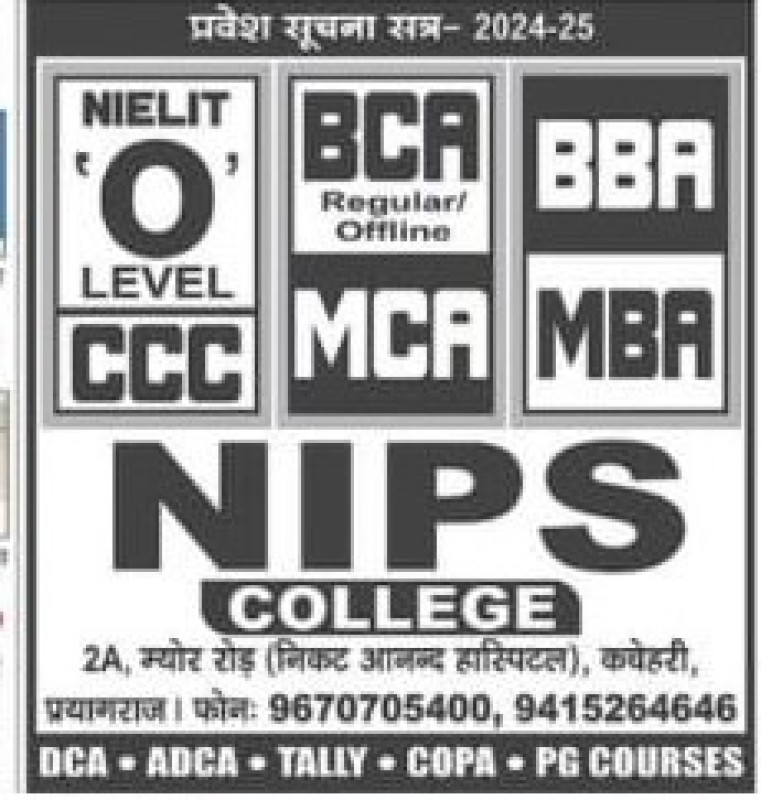 NIPS College of Information Technology and NIPS Computer Centre are managed by a Non- Profit making society, registered under the Societies Registration Act, 1964. Started in 1987, by a group of Non Resident Indians, primarily from I.I.T., it has had a sustained growth in its activities and area of operations. It is the only Institute to have the permanent accreditation to DOEACC O Level Course and is permanently affiliated to NCVT for 1 year Government of India recognised course "Computer Operator and Programming Assistant", called COPA in short. Besides the above it is also imparting training in PGDCA (Registered Study Institute of Makhanlal Chaturvedi National University of Journalism and Communication, Bhopal) and BCA and MCA ( Learning Centre of Punjab Technical University, Jalandhar).